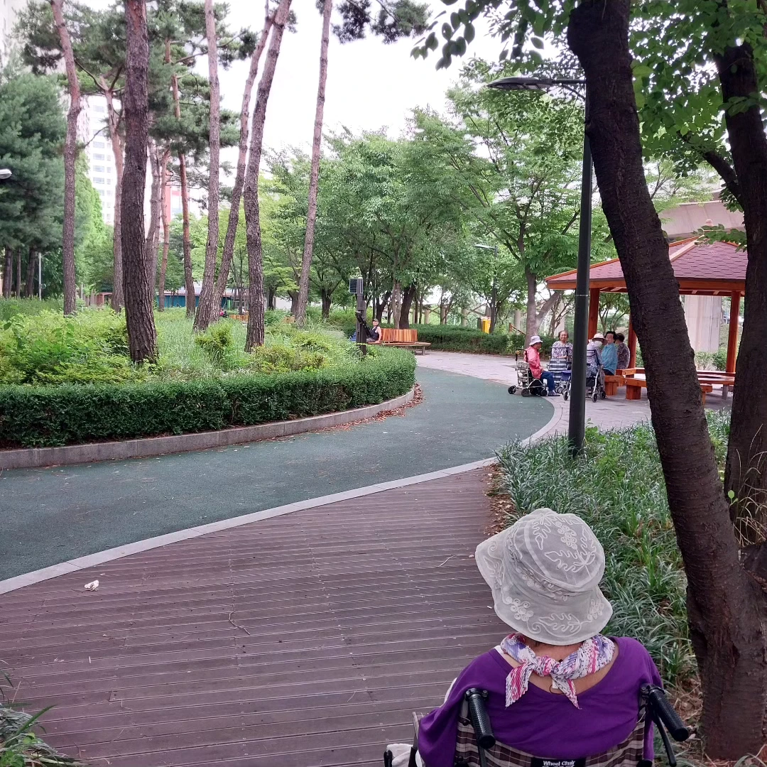 새 스카프를 하고 소변줄은 바지춤에 감추고 달리고 달려서 온 길. 산책길.