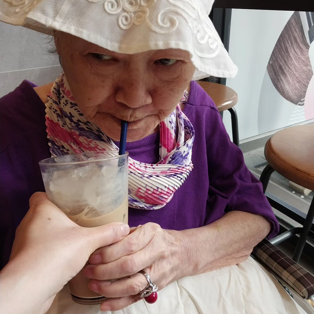 카페에 온 엄마 사진을 찍어서 보여드리자