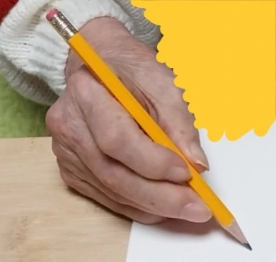 엄마에게 종이와 연필을 드리고 이름을 써달라고 부탁했더니 정색을 하고 고쳐 앉아서 힘들게 써나간다. 선은 온통 요철무늬로 간신히 이어져있다. 엄마는 다시 한번 도전한다.