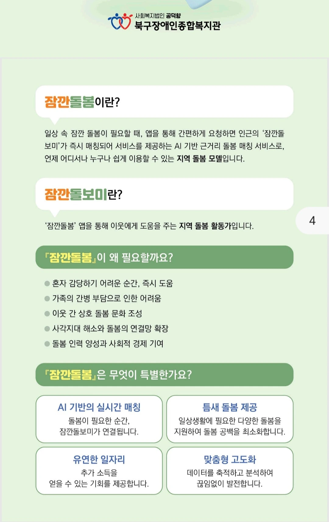 AI의 시대에 우리의 돌봄은 어디까지 진보할 수 있을까요? 저는 가능하면 많은 사회적 자원을 사용하여 엄마를 돌보고 싶습니다. 일본에서 새롭게 개발된 자동배설처리 장치인 마인렛 (Minelet) 사와야카와 유니참(Unicharm)에서 나오는 기저귀 케어 용품을 지원받을 수 있어야 합니다. 살던 곳에서 자연사할 때까지 현재 마포 지역에서 실시하고 있는 방문 간호를 적극적으로 받고 싶습니다. 안과, 치과, 한의원 등 다양한 의료 서비스를 필요로 합니다. 장시간 간병을 하는 가족들에게 정서적인 지원도 절실히 필요합니다.
