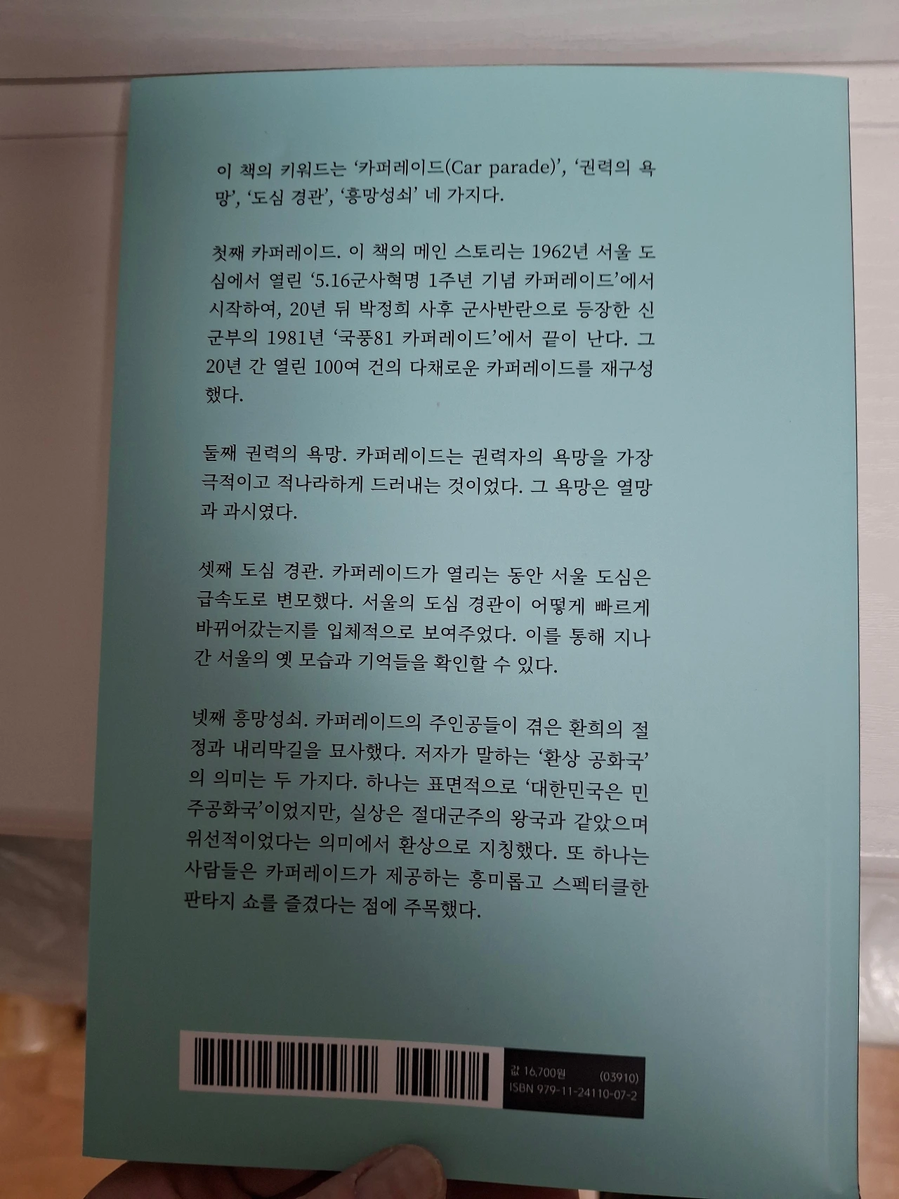 <환상 공화국의 카퍼레이드>는 제목부터 아이러니하다. 흥미롭게 서너 장을 넘겨보는데 전화가 왔다. 신문사 기자였고, 인터뷰를 원했다. 나는 기자가 기사 내용을 확정하고 그 틀 안에서 글을 쓰는 일을 봐왔다. 요양보호사로서의 권익과 처우개선을 강력히 요구하는 것은 맞다. 그러나 지구 저편에서 티끌처럼 생긴 문제를 확대 해석하는 건 거부한다. 우리에게 긍정적인 영향을 기사화하는 것도 사회에 기여하는 것이다. 부정적이고 문제점만 나열하는 것이 저널리즘은 아니다. 재가요양에서는 케어 대상이 병원에 입원을 하는 경우가 많기에 비자발적 고용 불안에 시달린다. 장기근속을 해도 혜택이 별로 없다. 최저임금 수준의 임금을 받으며 헌신을 요구받는다. 직업적 존엄성과 정당한 대우를 받기 위해서 우리가 할 수 있는 일은 무엇일까? 그리고 최저임금에서 적절한 임금으로 생계를 유지할 수 있도록 요구해야 한다.