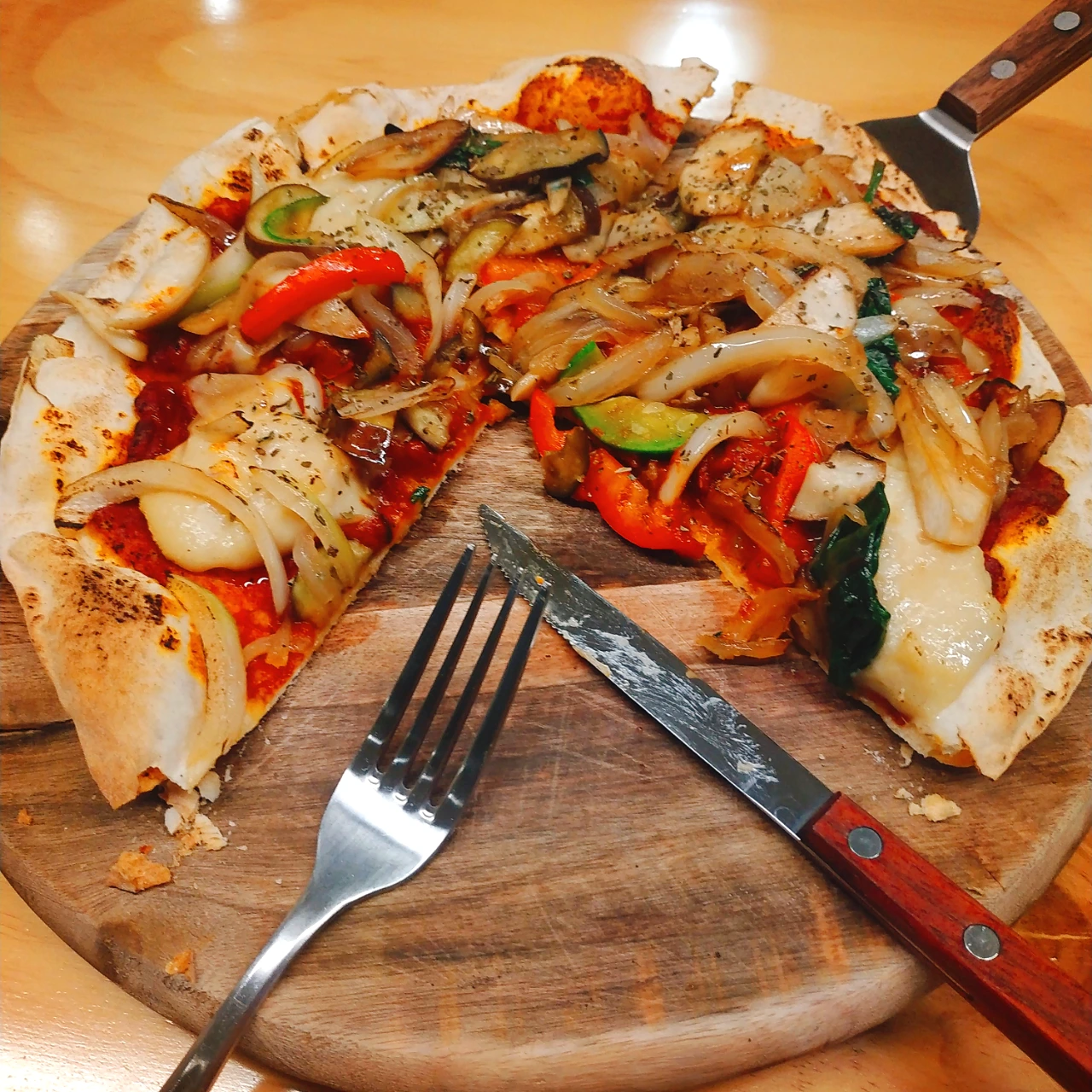 피자를 실컷 먹고 남은 조각을 포장해 집으로 향한다. 집에는 들깨채소탕 한 냄비가 고요히 잠들어있겠지. 내일은 식은 피자와 들깨채소탕을 함께 먹어야지. 생각만으로도 침이 고인다.