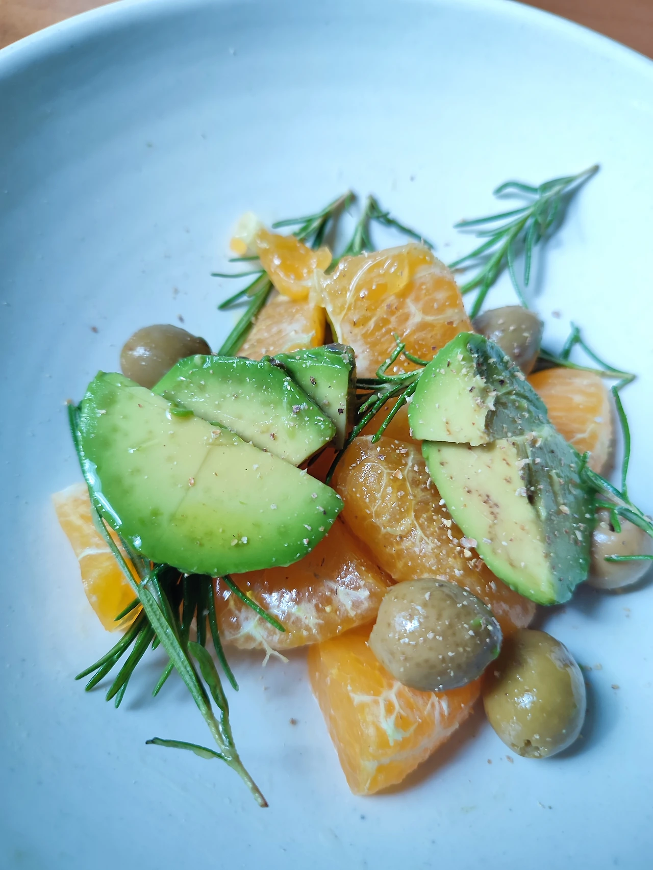 오늘은 요리책에서 본 샐러드를 만들어 먹었다. 귤과 아보카도, 올리브에 발사믹 화이트 식초를 뿌려 섞은 뒤 로즈메리 잎사귀를 넉넉히 곁들이면 된다. 한 재료도 빼놓기 싫었기 때문에 샐러드가 아니면 쓸 일이 없는 로즈메리를 살까 말까 고민하다가 어젯밤에 마켓컬리로 샀다. 나는 귤이 없어서 한라봉으로 대신했는데, 오늘 귤이 생겼으니 내일 다시 만들어 봐야지.