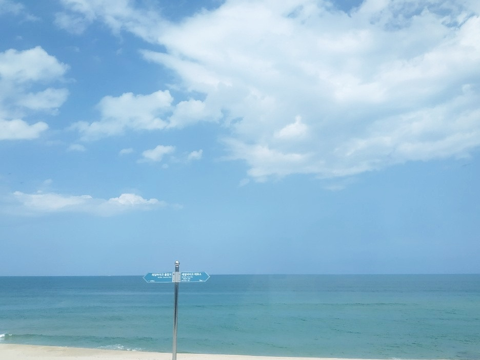 맑은 날, 색이 다른 두장의 종이를 잘 자른 뒤 포갠 것 같은 풍경이 창밖으로 하염없이 펼쳐진다. 뒷 좌석에 앉은 엄마가 연신 묻는다. "좋지? 좋지? 좋아?"