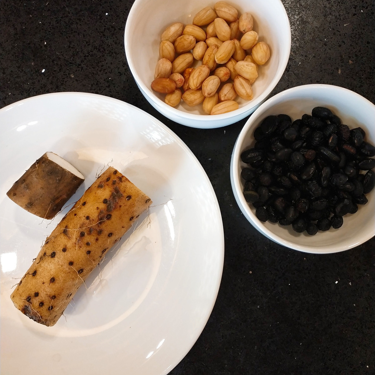 오늘 수업은 간단 그 자체, 마와 콩을 섞은 반죽을 튀겨내면 끝이다. 혼자 하는 것도 아니고 네댓 명이 조를 지어 요리 하나를 만들기 때문에, 달리 거들 일도 없어 다른 이들이 마를 다듬고 콩을 삶는 걸 뒷짐 지고 지켜봤다.