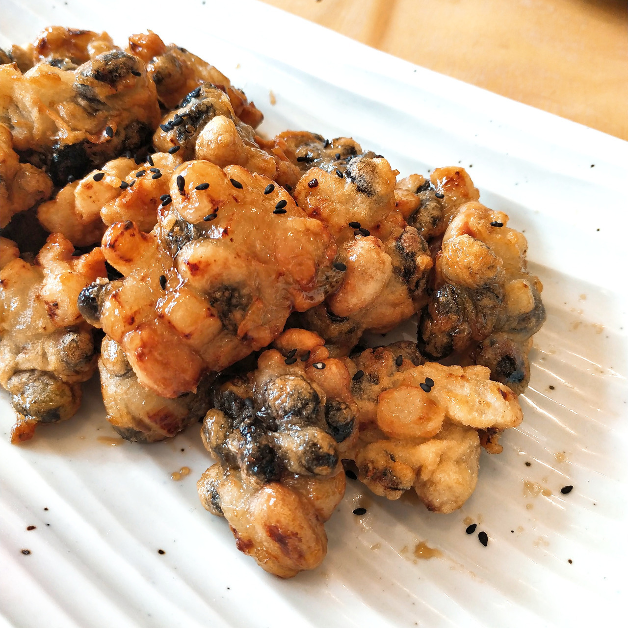 멀뚱멀뚱 서있으려니, 손 빠른 누군가가 그새 마와 삶은 콩을 버무려 반죽까지 만들고는 튀기기 시작했다. 한눈에 척 봐도 주부 만렙에 빛나는 초고수. 날렵한 솜씨로 솥을 종횡무진 누비는 그녀의 젓가락 끝에서 금세 노릇한 튀김이 바사사삭- 기분 좋은 소리를 내며 기름 표면 위로 퐁 떠올랐다. 당신을 튀김 장인으로 임명합니다. 장인의 젓가락 끝에서 그날따라 유난했던 나의 피로도 함께 튀겨진 걸까. 그래도 여기까지 왔는데 한번 튀겨보기라도 해야겠다싶은 생각이 잘 익은 튀김처럼 퐁 떠올랐다. 장인의 젓가락을 건네받고 솥 앞에 섰다. 세상 모든 것을 완벽하게 튀길 수 있는 비장의 무기를 건네받은 느낌이다. 흐압!