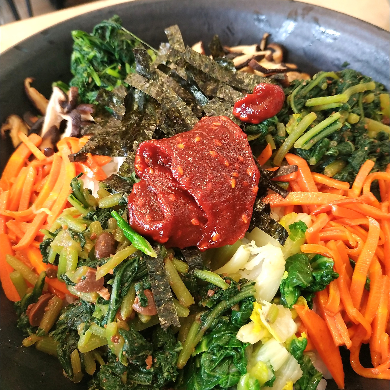 눈을 즐겁게 하는 조화로움도 잠시, 젓가락질 몇 번에 비빔밥은 말 그대로 비벼진다. 먹는 건 쓱-이다. 굳이 재료 손질에 이 많은 수고를 할 필요가 있을까 싶을 정도로 순식간이라서 허무한 마음도 든다. 나물이 다 같은 나물이지 일일이 따로 데치는 것도 모자라양념까지 따로 만들 필요가 있나 싶지만, 재료 손질에 얼마나 정성을 들였느냐에 따라 느껴지는 맛의 깊이가 완전히 다르다. 그 맛을 알고 나면 비빔밥을 만들 때마다 수고로움을 감내할 수밖에.