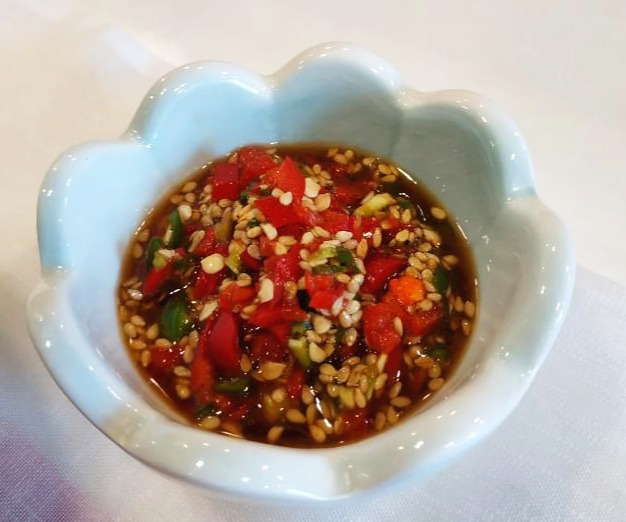 밥은 다 됐겠다, 이제 밥에 곁들일 양념장을 만들 차례. 홍고추와 청고추를 다진 뒤, 간장과 기름을 붓고 섞으면 되는 간단한 양념장이다. 스님이 홍고추와 청고추를 각기 따로 채 썰며 물으셨다. "어차피 한 군데 섞을 건데, 왜 따로 채 썰까 싶죠?" 엇, 들켰네. 뜨끔해하고 있는데 이어지는 스님의 말. "홍고추와 청고추를 같이 썰면, 양념장에 담았을 때 색이 탁해요. 같이 썰면 편한 걸 왜 몰라. 요리하는 사람이 바보라서 그러겠어요?"