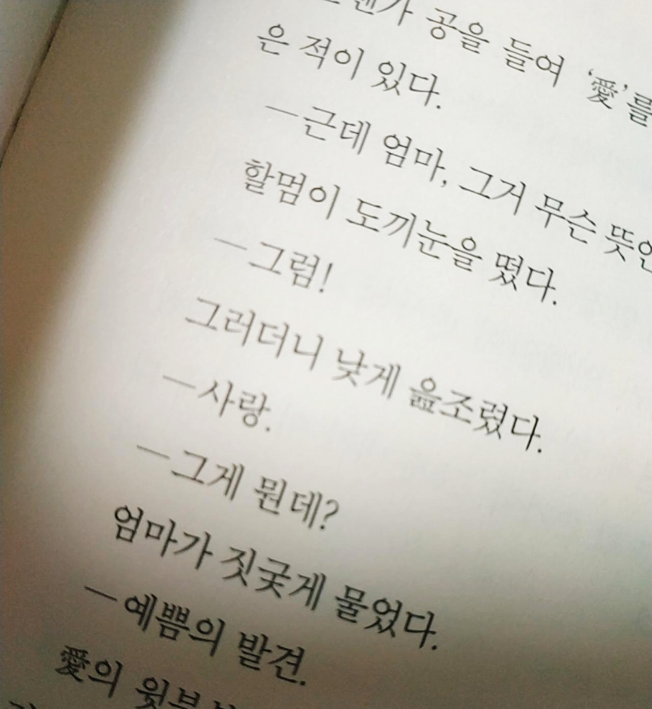 <슬플 땐 둘이서 양산을>의 마지막 부분에 아주 반짝반짝하는 문장이 있어요. 그 부분을 좀 빌려볼게요.