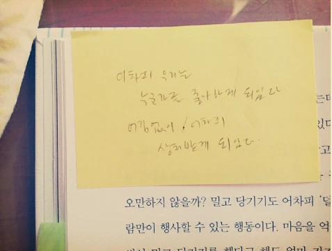 사랑해도 괜찮은 사람이란 어떤 사람일까. 나에게 갓짜낸 순수과즙 일백퍼센트의 행복감만 안겨주는 사람? 나를 아프게 하지 않을 사람? 책상에 놓여있던 책을 펼쳤다. 당신을 사랑하는 어느 날, 책 한 귀퉁이에 메모해 놓은 것이다.