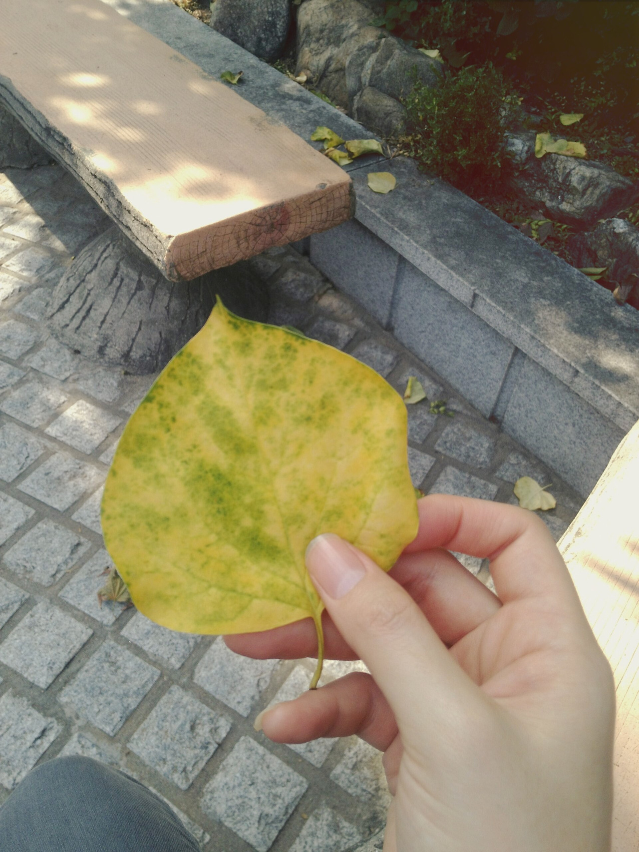나무 그늘 아래 앉아있는데 '푸드득' 날갯짓 소리가 나더니 나뭇잎이 내려 앉는다. 짧은 가을 중에 몇이나 나뭇잎의 날개 소리를 들을 수 있을까.
