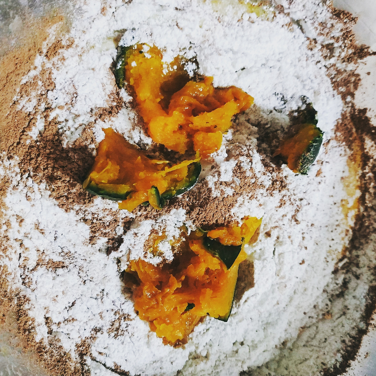 어제 새벽에는 단호박을 찌고 좋은 꿀과 현미가루로 반죽한 머핀을 구워두웠다.