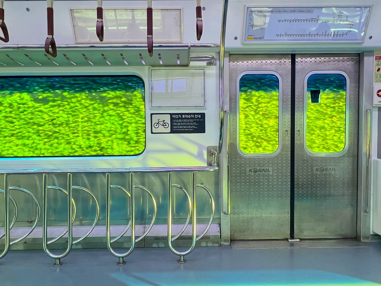 지하철을 타면 주로 폰을 보거나 책을 읽는다. 고개를 푹 숙이고 한참을 가다 무심코 고개를 들었는데 창밖 풍경에 초록이 무성하거나, 반짝이는 윤슬로 가득한 한강, 윈도우 배경화면 같은 하늘이 보이면 눈에 하트가 생긴다. 지하철을 탈 때 누릴 수 있는 행복이지!