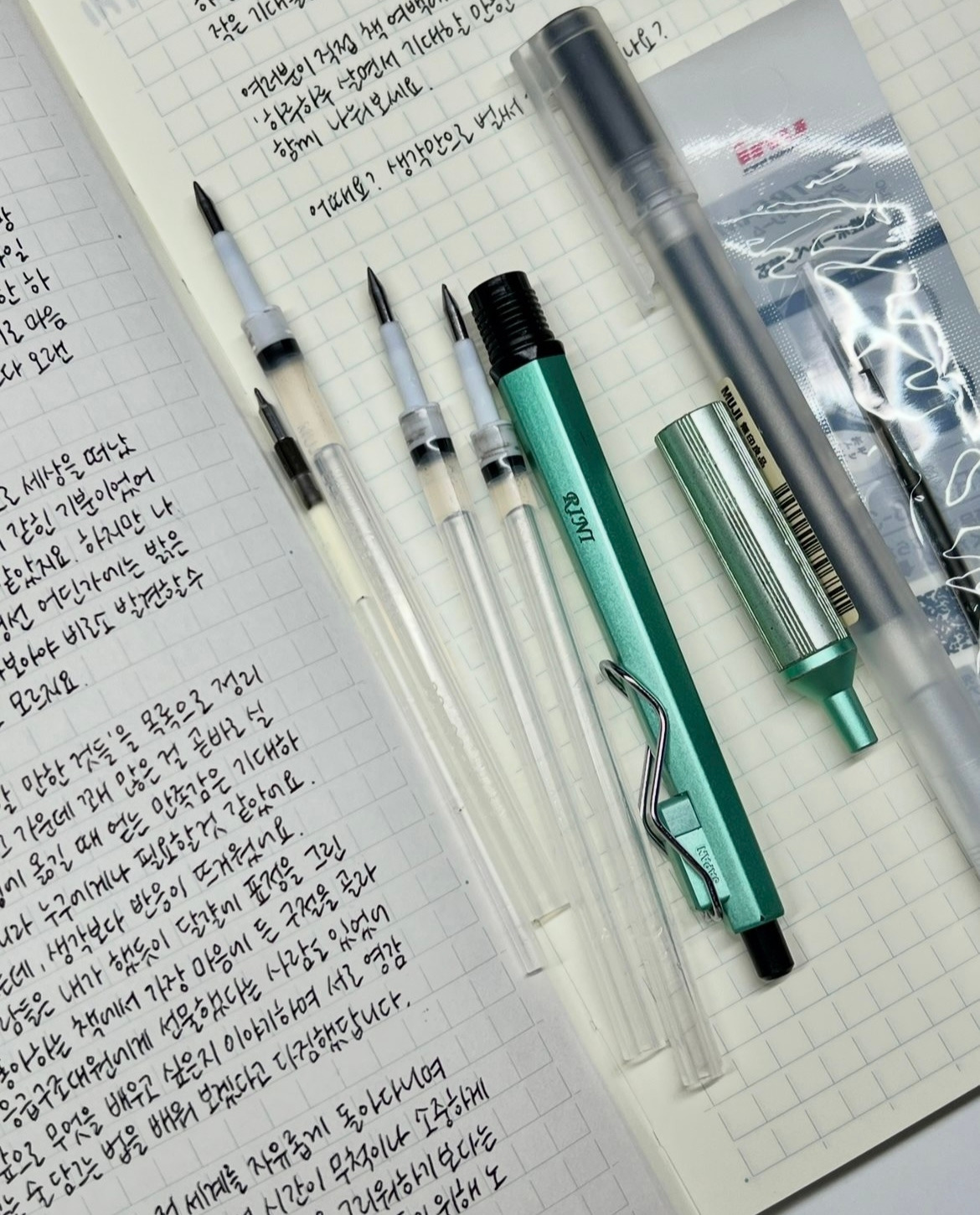 기록할 때 MUJI 잉크 젤펜, 제트스트림 엣지 이 두 가지 펜을 가장 많이 사용한다. 필기감도 부드럽고, 이 펜들로 쓴 글씨체가 마음에 든다. 펜을 구매할 때의 기대감과 잉크 리필심을 교체할 때 성취감은 기록을 꾸준히 하는데 있어 동기부여가 되어준다. 내 나이 70살 정도 되면 어떤 펜으로 어떤 노트에 어떤 기록을 하고 있을까? 여전히 볼펜 한 자루에 설레고, 만년필 잉크가 손에 묻어 있고, 노트를 펼쳐 별일 없는 오늘 하루를 끄적이는 귀여운 할머니의 모습이면 좋겠다.