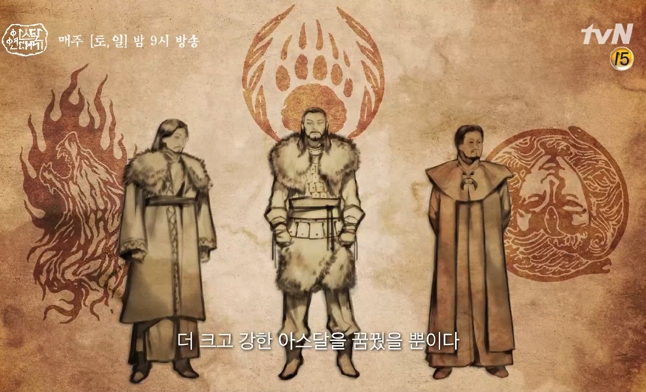 아 맞다. 깜빡 한게 있었네. 앞편에서 단군설화와 연결 짓는다고 해놓고는… 말이지. 이 영상을 통해 아스달 연대기가 단군설화의 맨 앞부분인 환웅이 우사, 풍백, 운사를 데리고 땅에 내려온 부분을 어떻게 풀어 냈는지를 알 수 있었다.