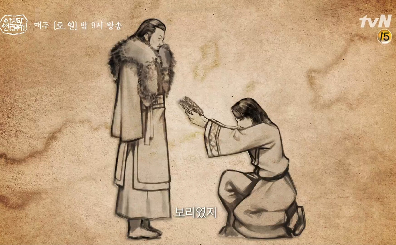영상 속 내용을 찬찬히 들어보면, 아스 대륙에도 보리는 있었지만 알곡이 다 여물때 줄기가 흩어지는 탓에 수확까지는 어려웠다는 이야기가 나온다. 그런데 해족이 가지고 온 보리는 알곡이 다 여물어도 줄기가 흩어지지 않았다고. 산웅이 해족을 받아들이기 전의 아스달 연맹의 농사가 어쩌면 곡식과 친해지는 단계의 수준에 머물고 있었을지도 모르겠다.