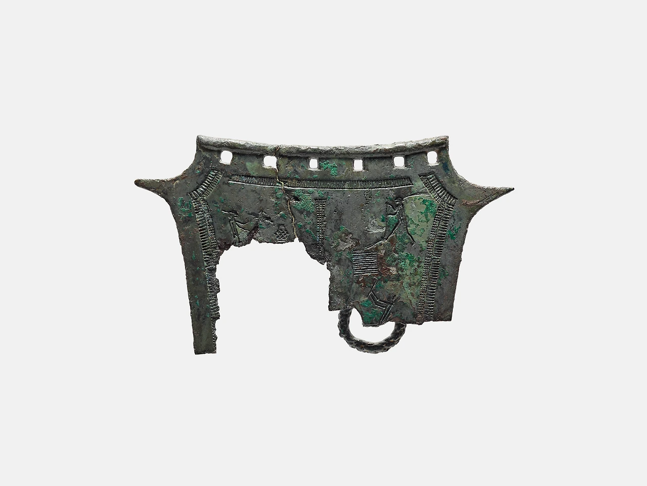 대전에서 출토되었다고 전해지는 이 농경문 청동기는 사람, 농기구, 경작지 등 농사짓는 모습과 나뭇가지 위의 새가 의미하는 것을 통해 한해의 풍요와 안녕을 빌며 행했던 주술적 의식과 관련 있는 의기로 추정된다고 한다.