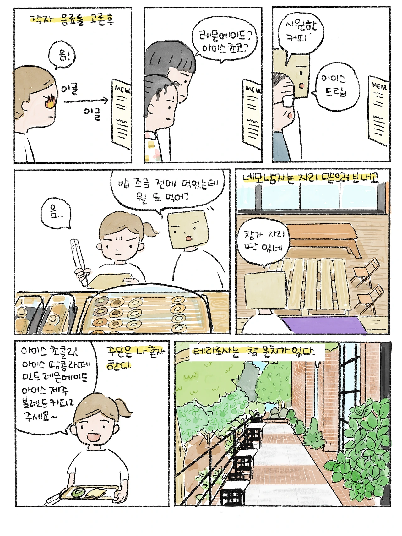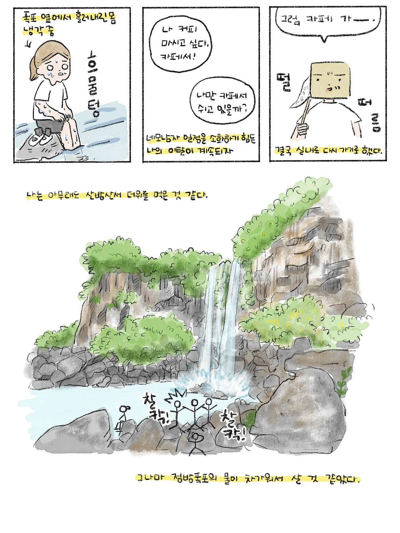 몸이 축축 처지니까 폭포고 뭐고 눈에 들어오지 않아서 늘어져있으니까 다행히 카페에 앉아서 커피 마시기 일정에 네모남자의 동의가 떨어졌습니다.