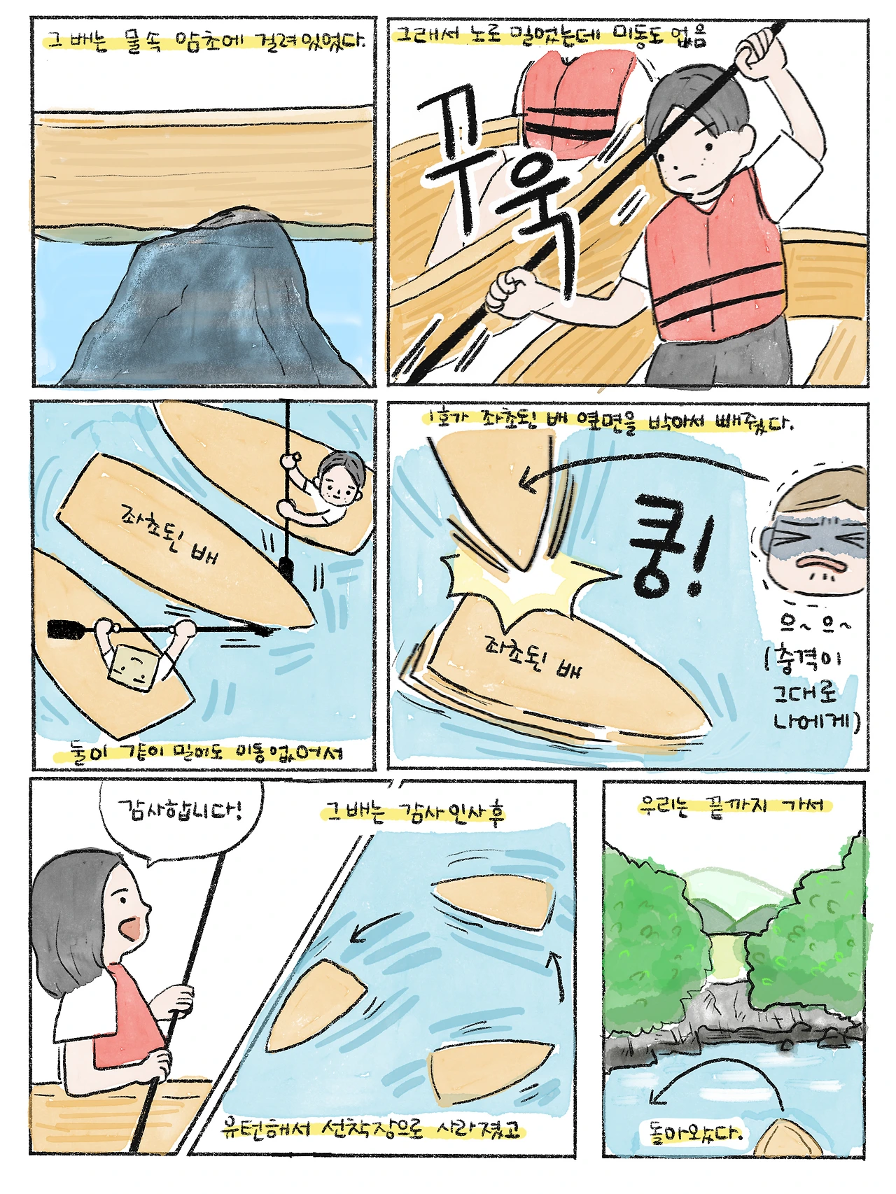 남편보다는 아들이 운전을 잘했습니다. 남편이랑 탔으면 아마 엄청 방정을 떨면서 카약을 흔들었을 겁니다.