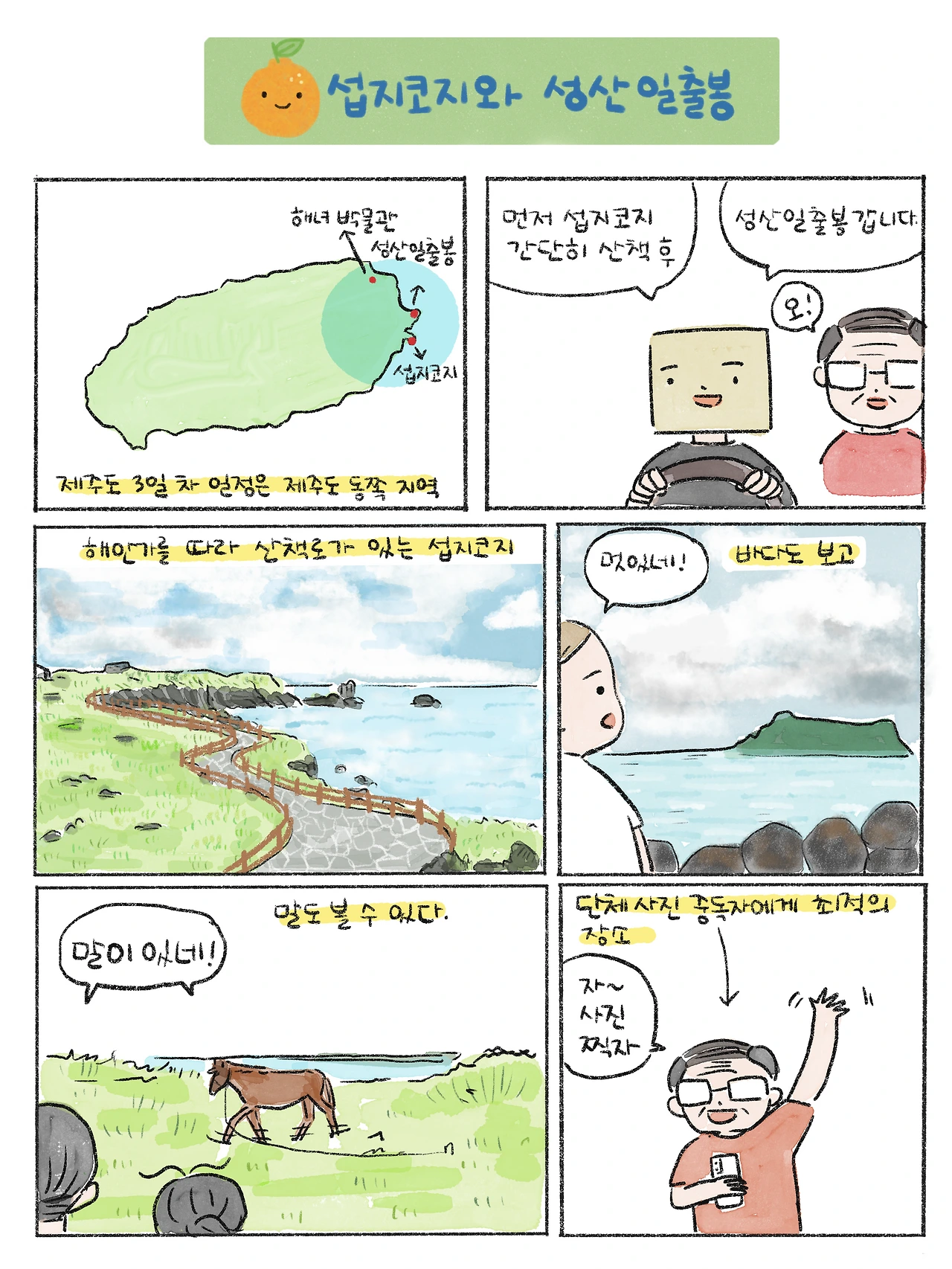 그러나 막상 성산일출봉 가고 싶으시다던 아버지는 오르지는 않겠다고 하시고 덩달아 다들 올라가기 싫다 하여 인증사진만 남긴 일정이 되었네요.