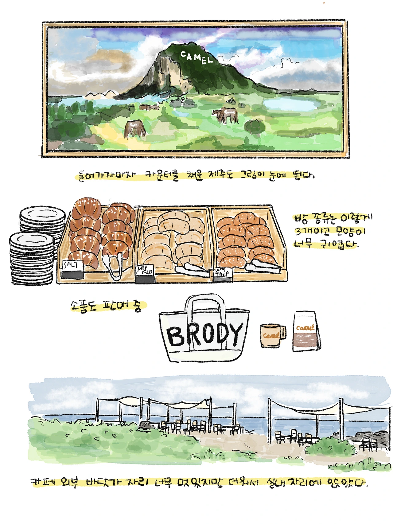 그래서 식구들이 만장굴에 가있는 동안 (저는 폐쇄공포증이 생겨서 굴에는 못 들어가요) 혼자 카멜 커피에 가려했는데 어쩌다 보니 다 같이 왔습니다.