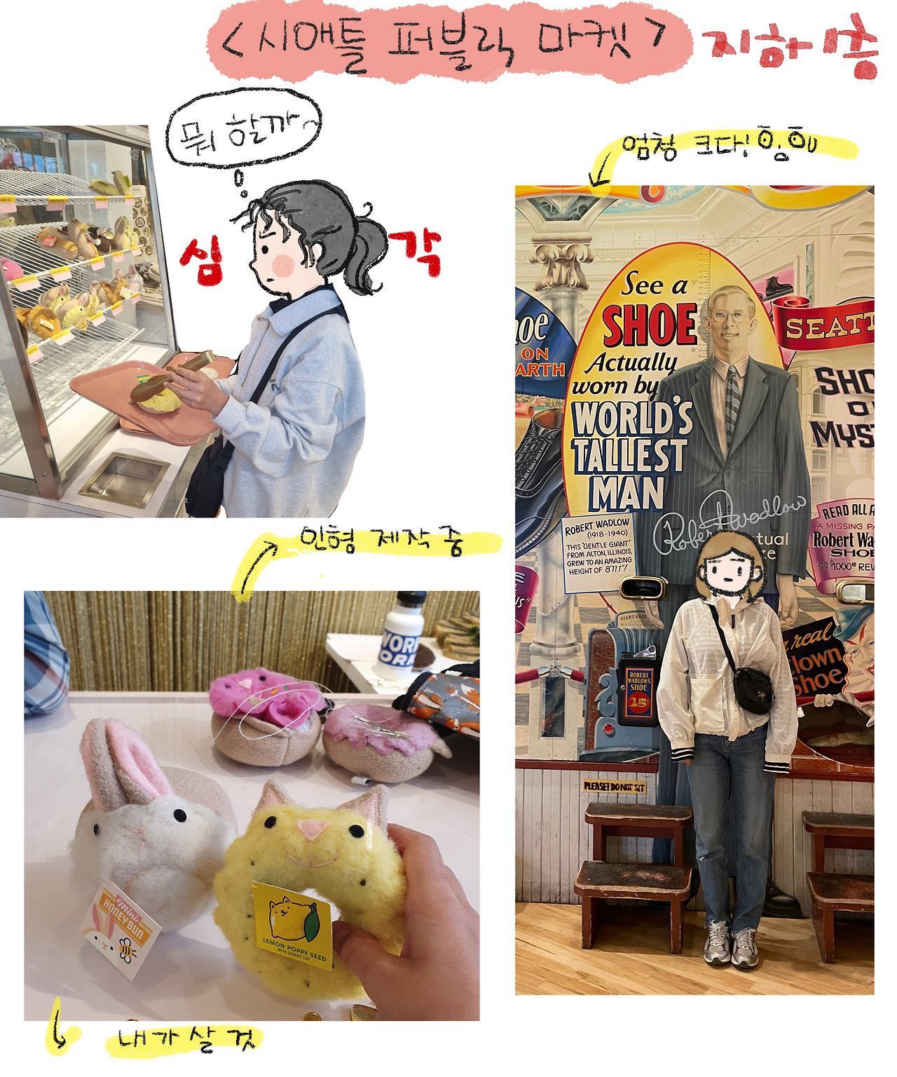 예전에는 좀 더 지역 수산물과 농산물이 많았던 것 같은데, 이번에 보니 관광객들이 많이 찾아서인지 선물용 상품들이 눈에 띄게 많았다. 흥미로운 것이 없어서 1층의 가게들을 대충 둘러본 뒤, 지하 1층으로 내려갔다. 보통 사람들이 퍼블릭 마켓을 여행의 한 코스로 스쳐 지나가다 보니 다들 지하에 매장이 있는지 모르는 경우가 많은데 지하에는 매직샵, 골든 에이지 영화와 코믹 북, 핸드메이드 인형 가게 등 특이한 가게들이 자리하고 있다.