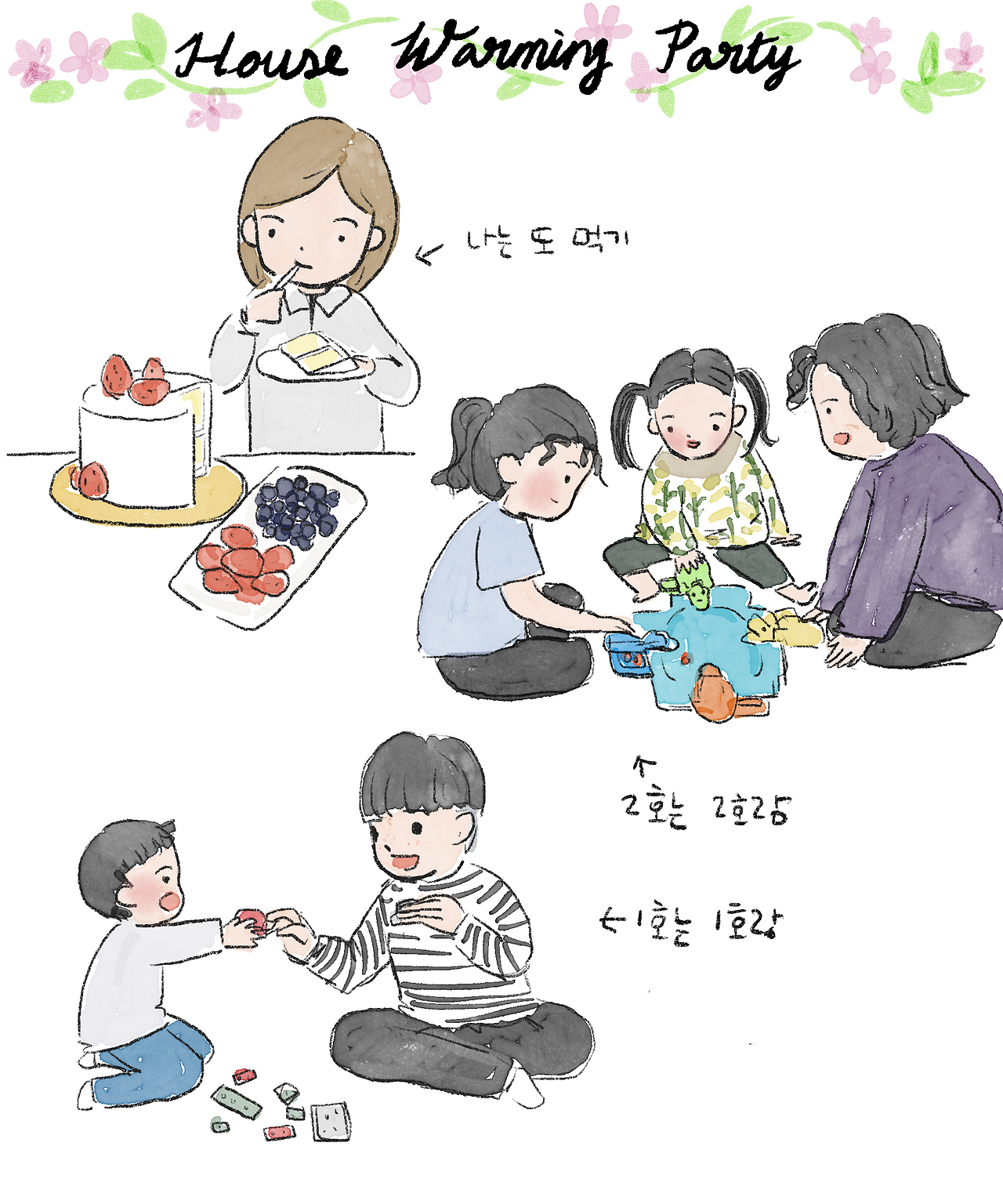 식사 후 사촌 동생이 최근 마련한 집에 들렀다. 집은 깔끔했고, 구조는 한국 아파트와 비슷한 듯하면서도 조금 달랐다. 인테리어 과정에서의 고생담을 듣는 동안, 아이들은 나이 차이가 꽤 남에도 위화감 없이 서로 어울려 놀기 바빴다. 나는 분명 저녁을 먹고 배부르다고 했는데도, 옆에서 케이크를 먹으며 아이들이 노는 모습을 지켜보았다. 아무래도 나도 점점 캐나다식 대식가가 되어가는 것 같았다.