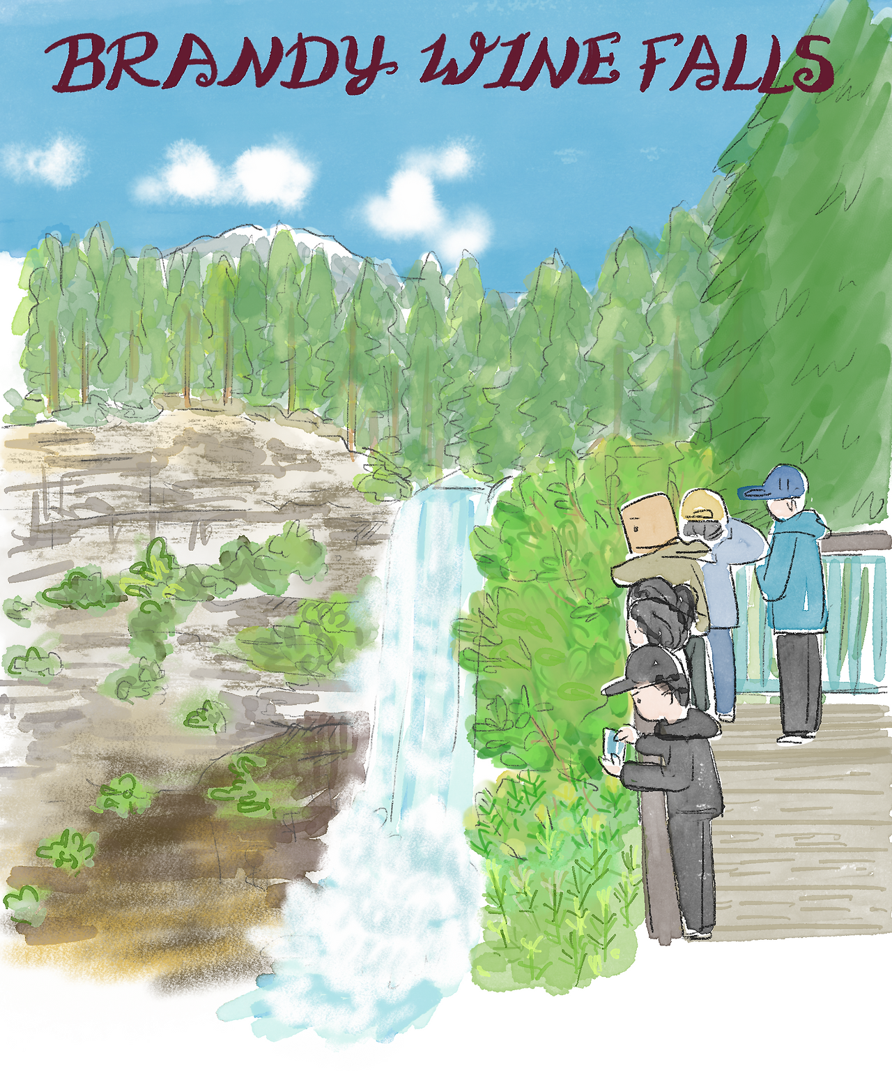 작은 개울을 지나며 “여기에 폭포가 있다고?” “얼마나 큰 폭포가 있겠어?”라며 의심하던 가족들이, 갑자기 눈앞에 나타난 커다란 폭포에 한 번에 압도되었다. 웅장하게 울려 퍼지는 물소리에 모두 폭포를 배경으로 사진 찍느라 정신이 없었다.