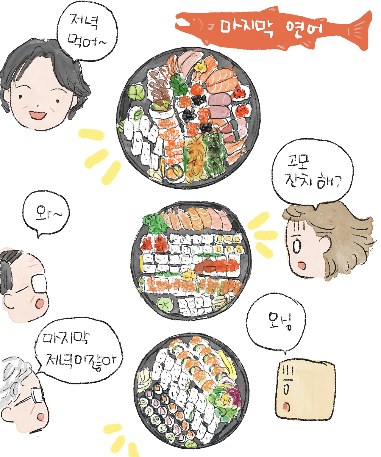 해외여행 중에는 한식보다는 현지식을 선호하는 편인데, 고모 집에서도 한식을 많이 먹었고, 밖에서도 한식을 주로 먹어서 고수에서는 솔직히 별로 먹고 싶은 것이 없었다. 그러자 네모남자가 즉석 떡볶이가 2인분 기본이라며 같이 먹자고 했다. 한국 가기 전날에 즉석 떡볶이라니, 참 얄궂은 메뉴 선택이었다. 그런 나와는 달리, 아빠는 한 번 실패했던 냉면을 다시 드시게 되어서인지 무척 만족해하셨다. 전날 잼 카페에서 베지볼을 드시고 여러 번 메뉴가 마음에 들지 않는다고 투덜거리셨는데, 냉면을 드시고는 그런 말씀 없이 정말 즐겁게 식사를 마치셨다.