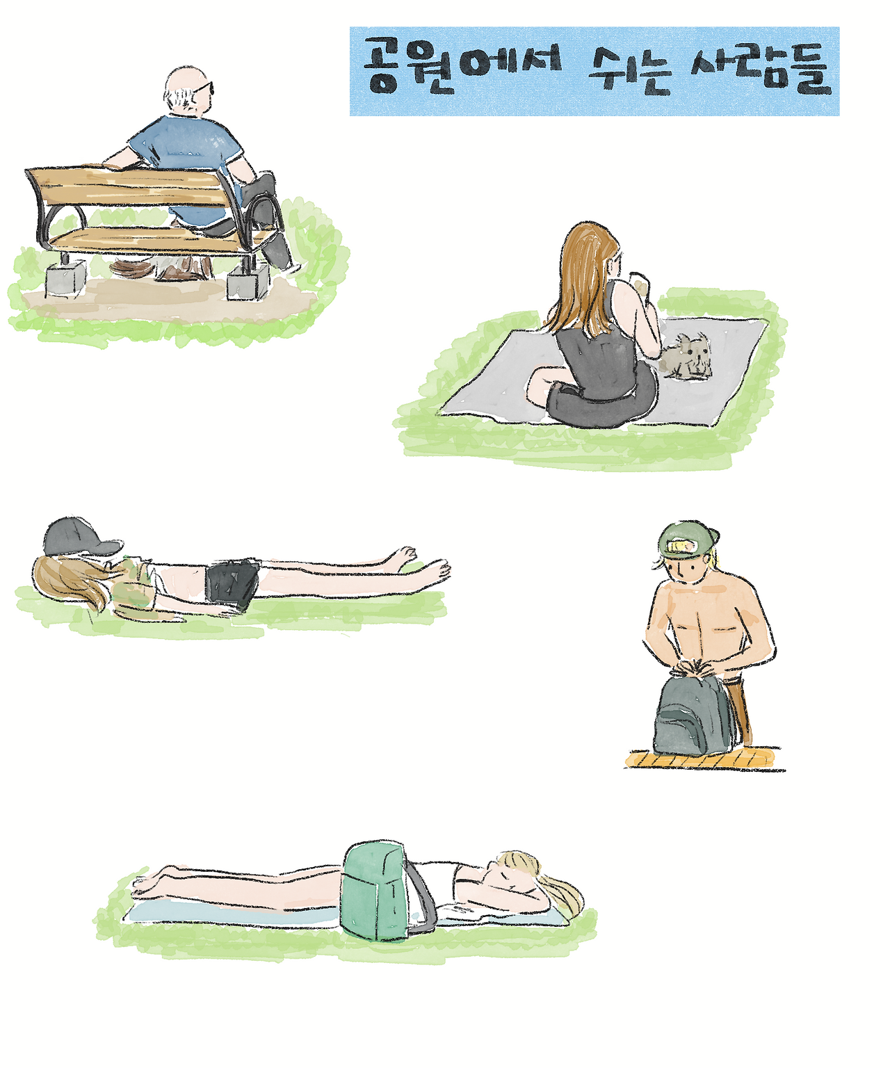 캐나다 사람들은 햇빛을 쐬는 것을 좋아한다. 다들 각양각색의 자세로 따사한 햇볕아래 최대한 맨살의 드러내고 공원에서 쉬고 있었다.