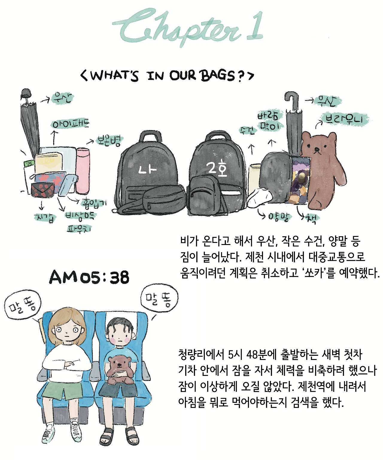*** 방학 전에 딸아이와 함께 당일치기 제천 기차 여행을 다녀왔습니다. 그림과 글씨를 같이 구성하면 좋을 것 같아서