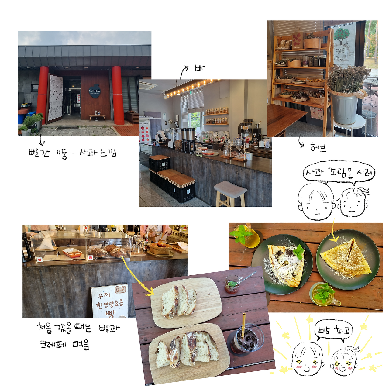 이번 가을에 방문했을 때는 쫀득한 식감의 파부르통과 제철 사과주스, 그리고 커피를 시켰다. 사장님이 서비스로 주신 사과는 아삭한 식감과 함께 새콤한 맛이 입안 가득 퍼지며, 역시 사과는 양구 사과라는 생각이 들었다. 이번 방문 때는 카페 앞 캠핑장이 공사 중이라 주변이 어수선했지만, 카페 안은 너무 유난히 조용하다고 느꼈다. 나중에 인스타 공지를 보니, 이번 달까지만 운영하신다는 소식을 알게 되었다. 이 카페를 알게 된 이후 매년 가을마다 사과를 사러 양구에 올 때면 항상 들렀는데, 이렇게 문을 닫게 되어 너무 아쉬울 뿐이다. 여기서 먹었던 모든 음식들은 속이 편하고 은은한 감칠맛이 있어 우리 가족 모두가 좋아했는데, 언젠가 다시 까미노 사이더리를 만날 수 있기를 바란다.