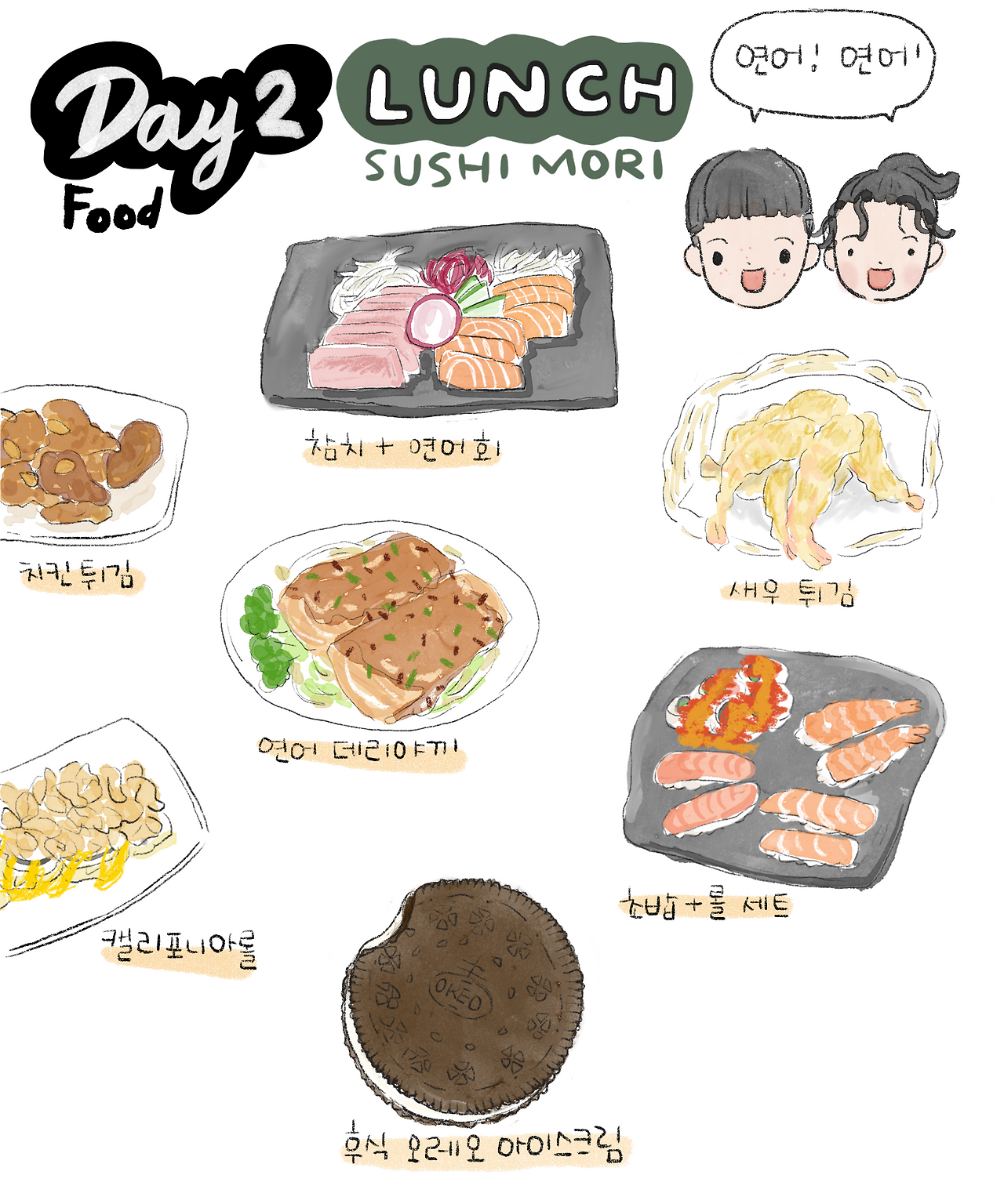 카필라노 현수교 탐방을 마친 후, 연어를 좋아하는 아이들 덕분에 바로 근처에 있는 일식집 '스시 모리'로 향했다. 밴쿠버에는 한인들이 운영하는 스시집이 많은데, 이곳 역시 그중 하나여서 직원분이 한국어로 응대해 주셔서 주문이 한결 수월했다. 고모는 큰 손답게 이런저런 주문을 엄청했기 때문에 도저히 다 먹을 수 없는 양이 나왔다. 결국 다 먹지 못해서 남은 음식은 포장을 했는데 분명히 배부르다던 1호는 옆의 가게에서 아이스크림을 사 후식으로 먹었다. 진짜 아이스크림 배는 따로 있나 보다.