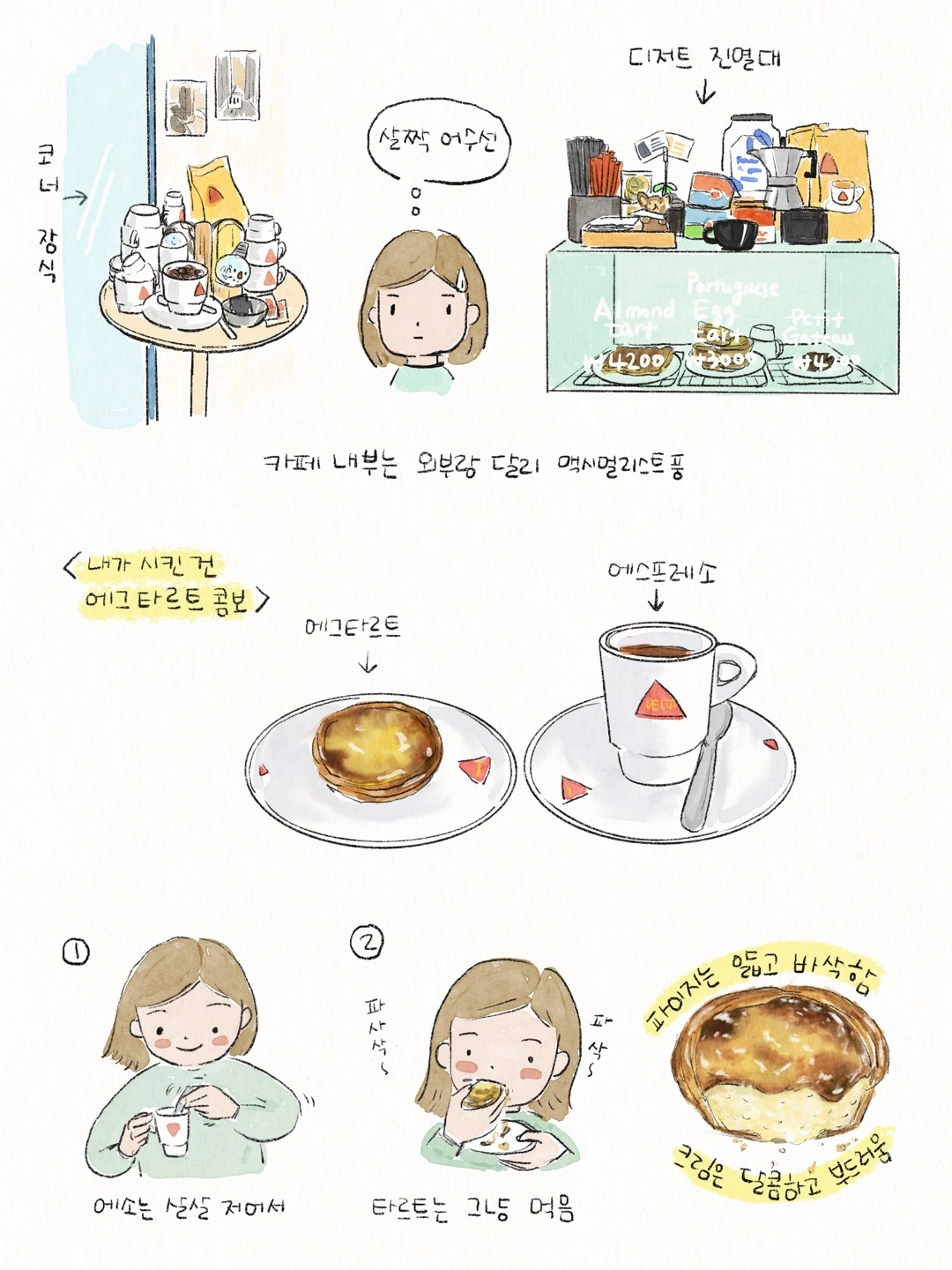 에스프레소에 한 때 꽂혀서 다른 에스프레소 바를 찾아 나섰다. 커피메이트와 함께 찾은 경복궁역 쏘리 에스프레소 바, 이곳은 포르투갈식 에그타르트로 유명한 곳이다.