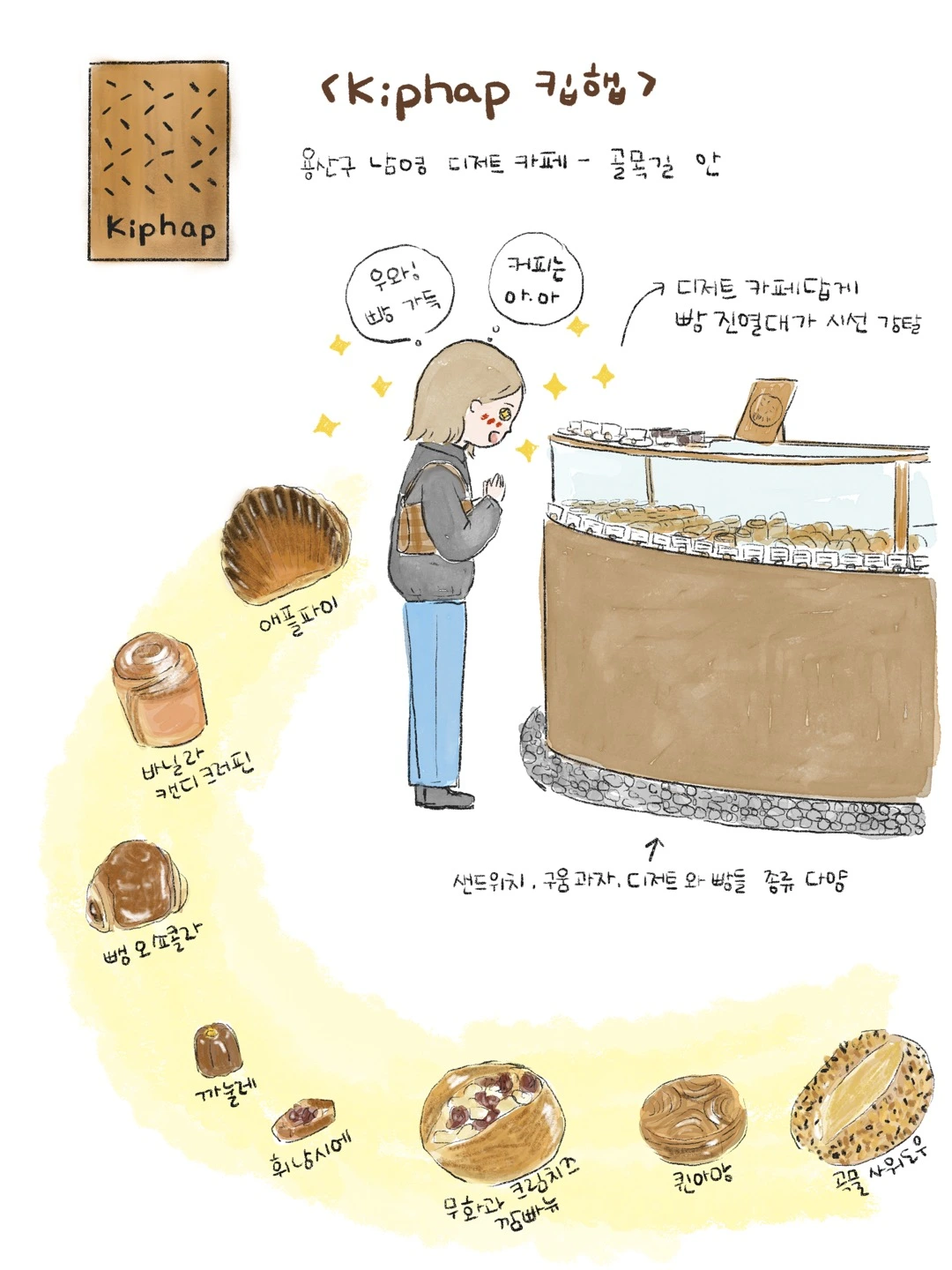 용산 남영역 근처에는 특별한 가게들이 많지 않았는데, 어느 날부터 하나둘씩 생겨나기 시작했다. 나는 걸어서 갈 수 있는 곳을 선호하는 편이라 대부분 동네서 멀리 벗어나지 않고 일을 보거나 걷다가 새로운 가게가 생기면 궁금해서 들러보곤 한다. 그런데 작은 골목 안, ‘여기에 과연 누가 올까?’ 싶은 곳에 디저트 가게가 하나 생겼다. 들어가 보니 빵이 가득했다. 빵순이로서 그냥 지나칠 수 없었다.