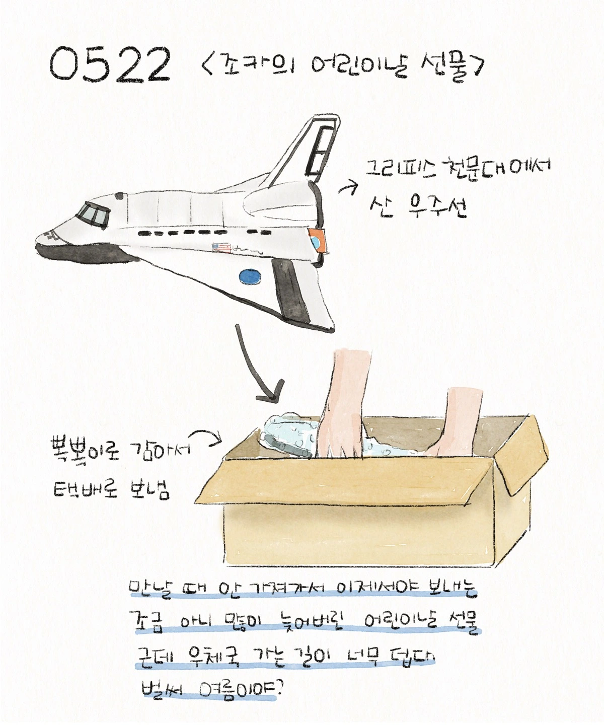 엉치뼈에도 금 간 만화를 끝내고 무엇을 그릴까 고민을 했어요. 영 주제가 생각나지 않아서 고민을 하다가 하루에 한 장씩 그리던 과거의 그림일기가 생각났습니다.