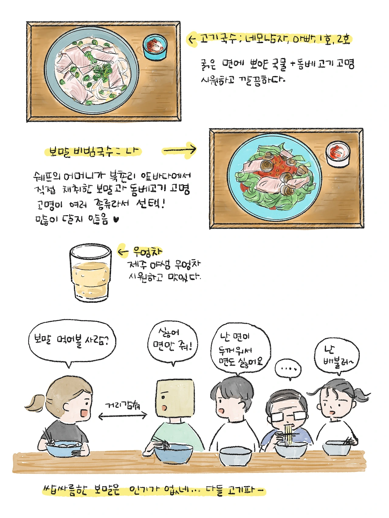 제주도 가기 전에 꼭 먹고 싶은 것을 미리 네모남자에게 전달했는데 전 고기국수였습니다.