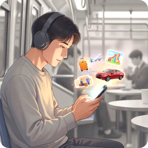 누군가의 여행 사진, 승진 소식, 새 차 사진이 눈에 들어온다.