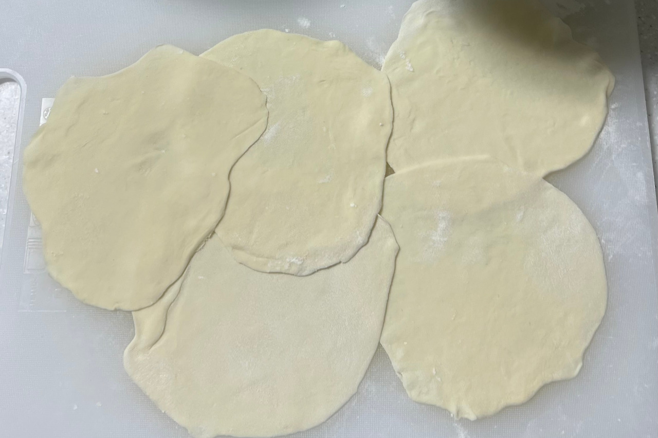 첫 경험의 기억을 떠올려 반죽을 아주 작게 소분하여 얇게 밀어냈다. 비교해 보니 처음에 만든 만두피는 정말 두꺼웠다는 것을 새삼 깨닫게 됐다.
