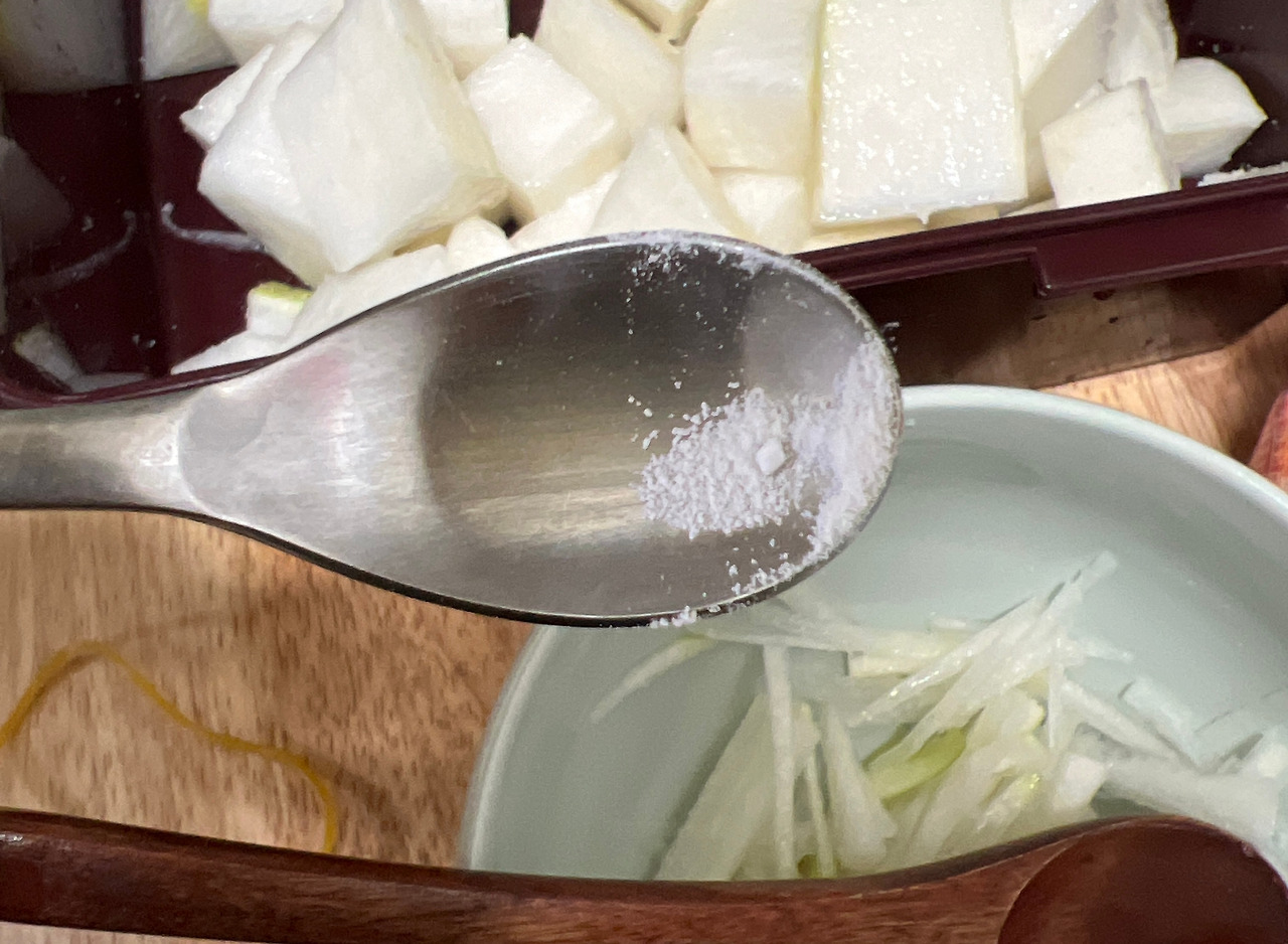 절이고 나서 한입 먹어본 무는 아주 달달했다. 인위적인 맛이 아닌 무 자체에서 흘러나온 단맛이었다.