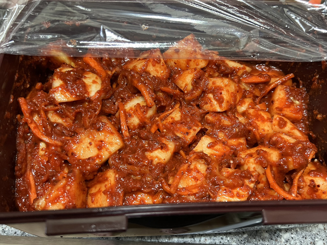 실패 이후로 다시 담그는 깍두기이기에 엄마에게 미리 레시피를 전수받아 공들여서 만들었다.