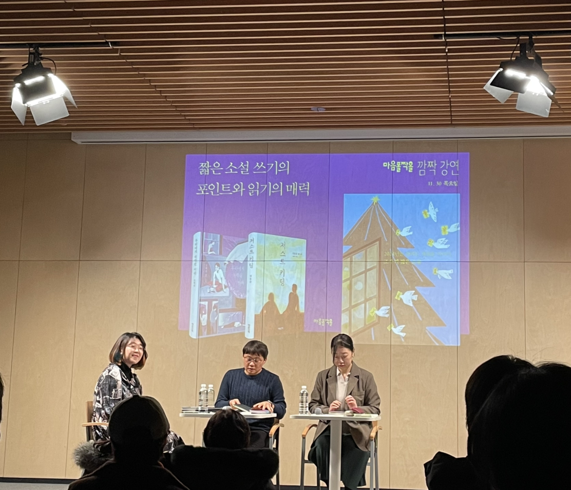 자신도 한 때 동료 소설가의 작업 스타일을 궁금했다고 털어놓았다. “모두 다르게 쓰기에 특별한 매뉴얼은 없었습니다. 상상력이 그리 중요하지 않았고, 아이디어에 달려있지도 않았어요. 경험이 많다고 소설을 잘 쓰는가를 묻는다면 반/반이라고 생각해요. 중요한 건 쓰고 싶은 마음인 것 같아요. 소설이란 쓰고 싶은 마음이 특정한 상황과 장면을 끌어오는 일 같습니다.”라며 말을 이었다.