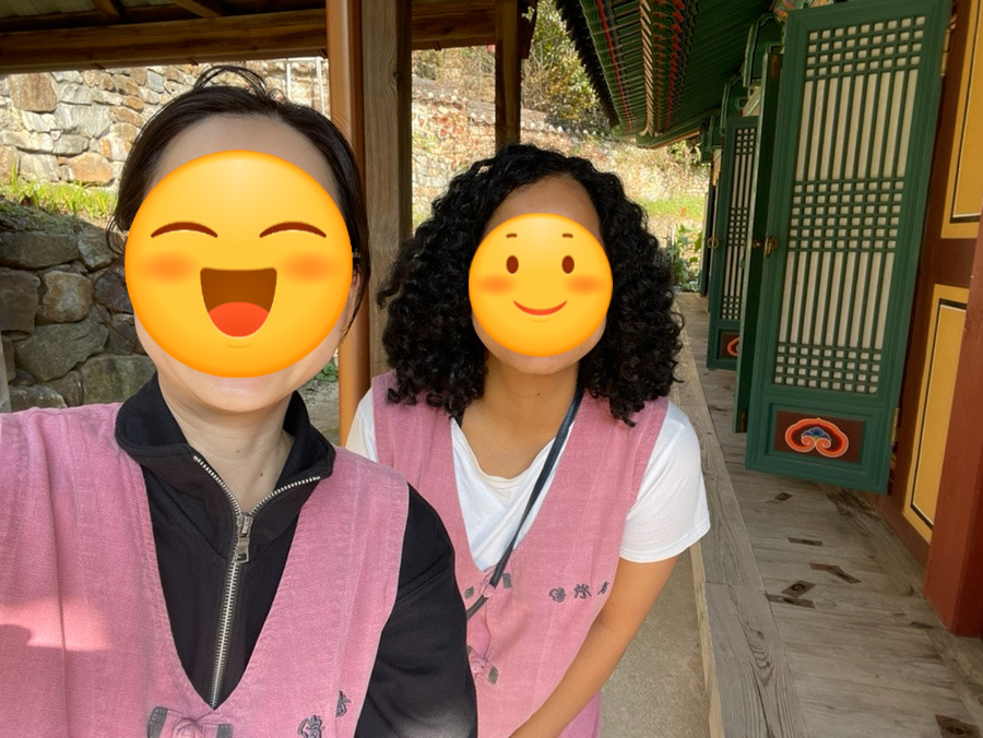 지난주 목요일-금요일 전등사로 처음 템플스테이를 다녀왔다. 브런치북도 완성했겠다, 스스로에게 선물을 주고 싶었다. 책도 읽고 절밥도 맛있게 먹고 혼자 쉬다와야지란 생각이었다. 그러다 우연히 그곳에서 만난 '삼삐'라는 외국인과 친해졌다. 우리는 다음 날 새벽 산책을 하며 함께 해돋이를 구경했다. 전등사를 떠나기 전에는 기념품 가게에서 서로 팔찌를 교환하며 행운을 빌어주었다.