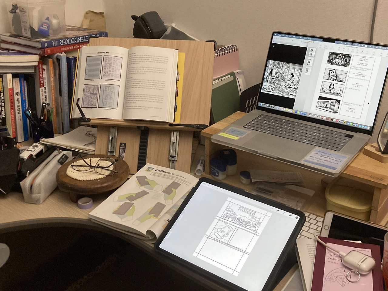 나는 그동안 콘티는 러프하고 빠르게 작성해야 한다고만 생각했다. 하지만 콘티에도 여러 형식이 있었다. 글(대본) 콘티, 섬네일 콘티, 스케치 콘티, 러프 콘티… 어떤 작가는 대본을 먼저 쓰고 세부 콘티를 그리기도 한다는 사실을 알게 되었다. 그리고 이것이 작가만의 독특한 연출법이 될 수 있다는 점을 이해하게 되었을 때, 내 불안과 갈등이 조금씩 해소되기 시작했다. 세부적인 콘티가 통제가 아닌, 오히려 팀원들과 생각을 나누는 소통의 도구가 될 수 있다는 희망을 보게 된 것이다.