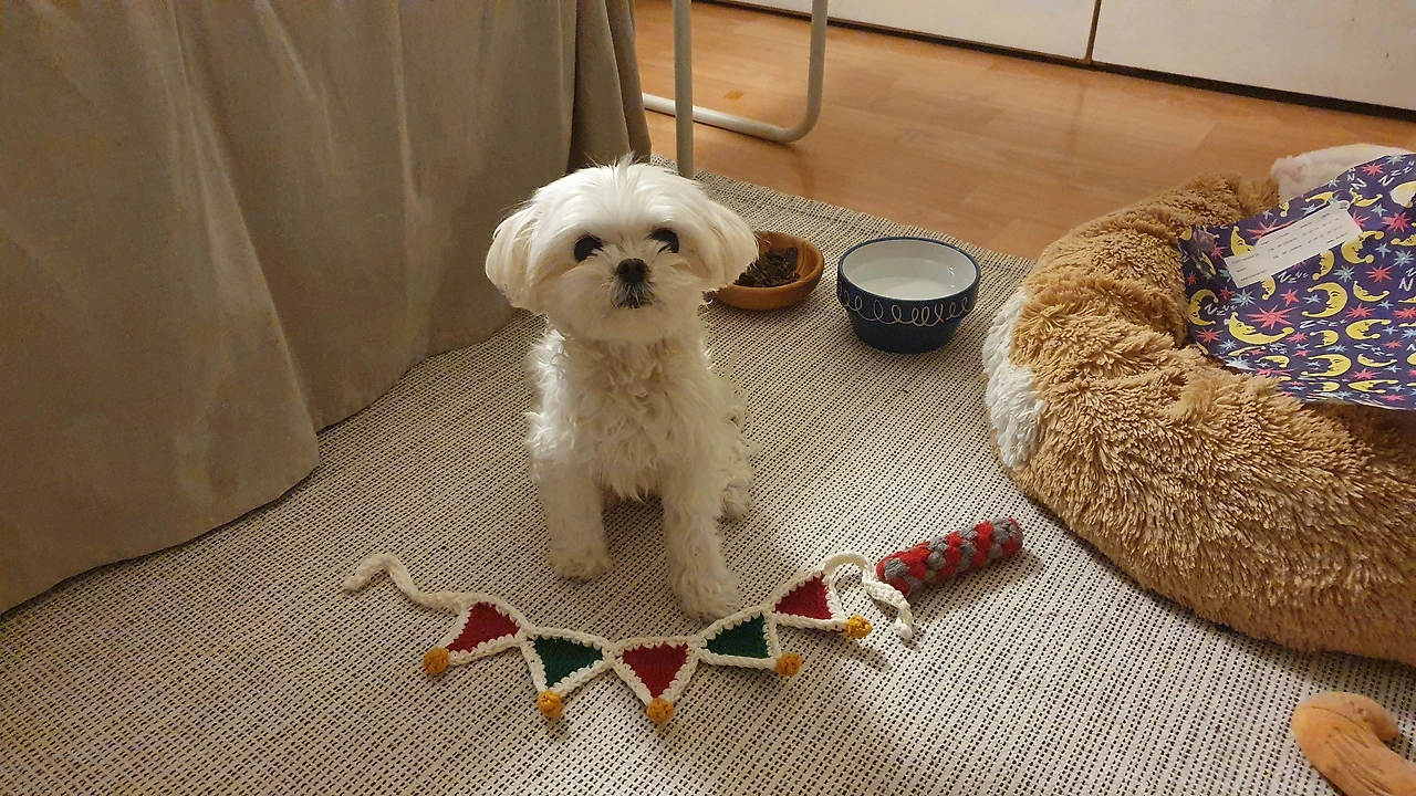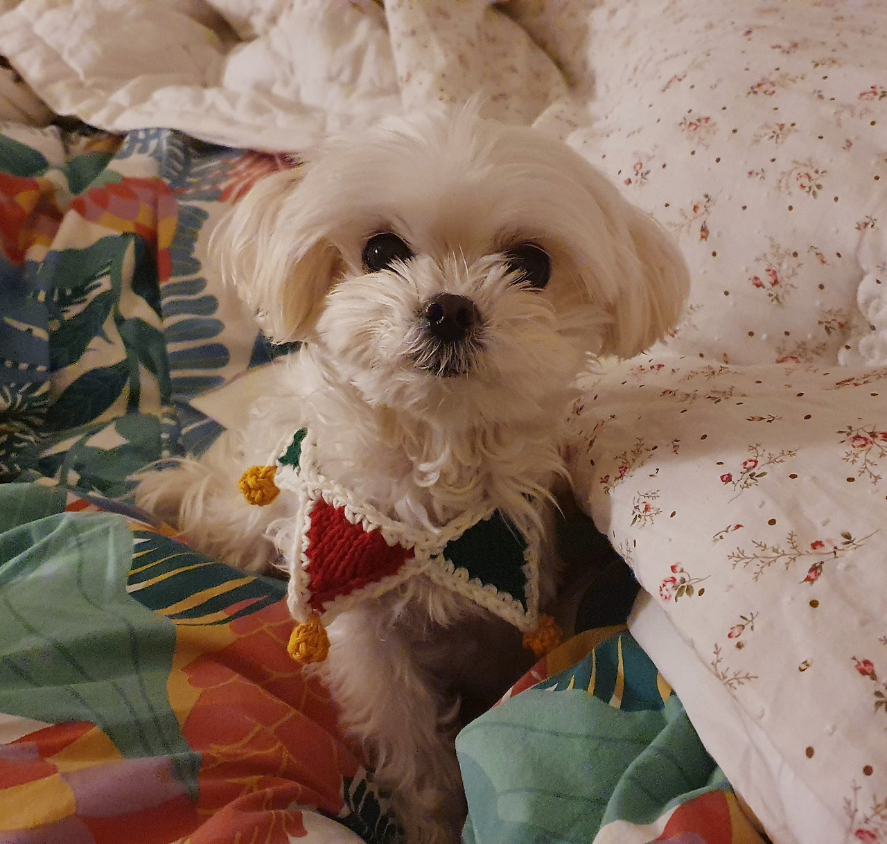크리스마스 시즌에 뜬 강아지 스카프. 귀여워서 친구네 강아지도 떠 줬다.
