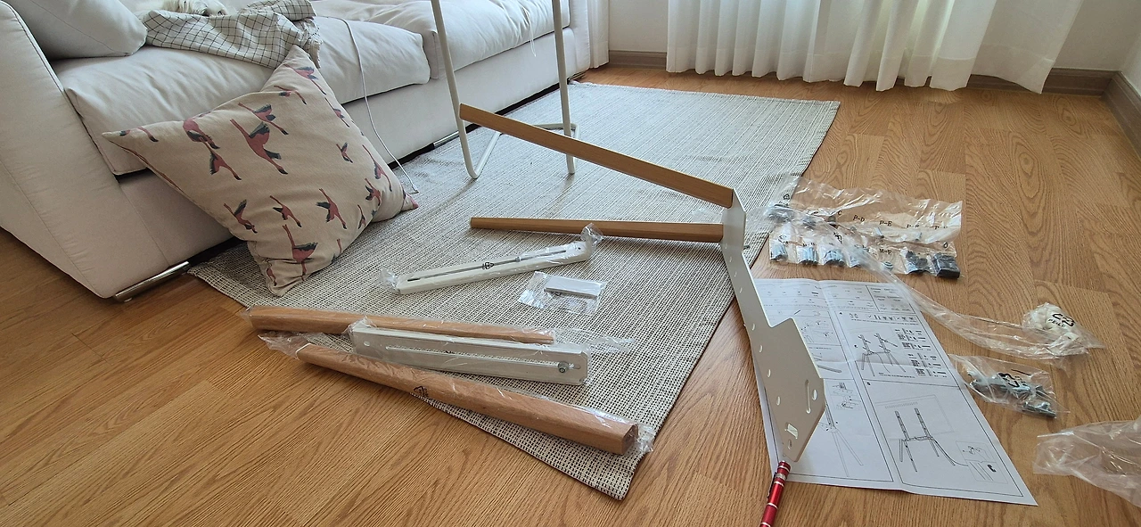 한국에 돌아와 이사를 준비하며 티비도 미리 주문해 가져가려 했으나 가구배치를 다 끝낸 후 거실에 남을 여유공 공간이 감이 오지 않아 선뜻 티비 사이즈를 결정하지 못했고, 이 부분이 알게 모르게 나를 더욱더 티비에 목마르게 했다. 나는 kbs, mbc, tvn 같은 채널이 나오는 '티비'를 살 필요는 없었다. 아빠의 얄궂은 특훈으로 나는 티비 프로 자체에 관심도 크게 없는 성인이 되었거니와 요즘엔 티비에는 죄다 40줄 남자 연예인들이 엄마와 함께 나오는 프로라던지, 연예인들이 끊임없이 혼잣말을 하며 요리를 하는 프로라던지, 트로트라던지, 노래 경연이라던지 하는 프로만 죄다 있는 것 같아-단지 우리 엄마의 취향일 수도- 티비를 사지 않아도, 큰 모니터만 사도 되었다. 다만, 스마트 모니터로 나오는 것들은 내 기준에 사이즈가 조금 부족해 스마트티비를 구입해 OTT기능만 쓸 생각이었다. 그래서이사를 마치고 가구 배치가 끝나자마자 줄자를 꺼내 들고 티비 사이즈를 어림해 티비와 거치대를 주문했다.