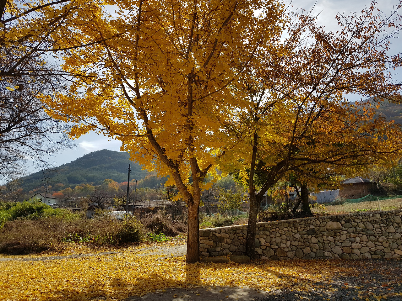 매일매일 색 다르게 채색되는 산과 들을 바라보며, 때론 우수수, 때론 살포지 떨어지는 낙엽을 바라볼 때에 가을이 가슴으로 담긴다. 가을이 깊어질수록 향과 색상이 짙어지는 국화꽃, 서릿발에도 태양을 닮은 붉은 금색을 뿜어내는 금잔화에서 고고함을 마음에 담고, 가지마다 주렁주렁 매달린 연분홍 감홍시를 보면서 가을의 풍성함을 마음에 담는다. 병풍처럼 마을을 사방으로 둘러쳐진 산하에서 품어져 나오는 가을의 정취를 온몸으로 듬뿍 담는다.