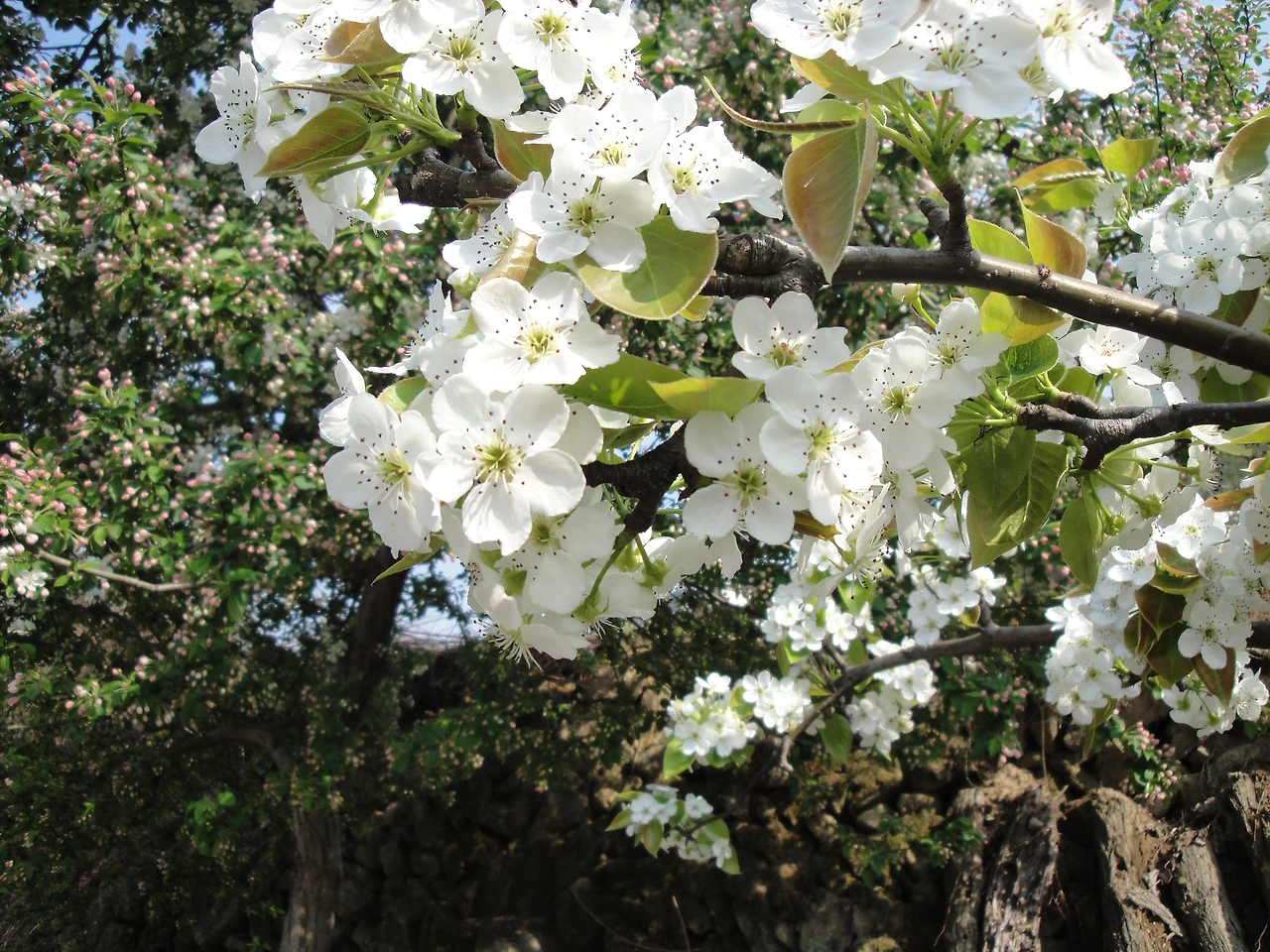 파란 하늘 아래 하얀 배꽃을 쳐다보면 순백의 아름다움이 무엇인가를 알 수 있게 해주는 것 같다.