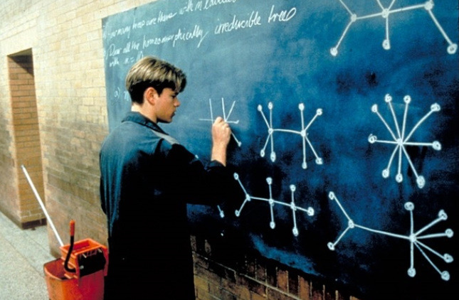 제대로 된 학교 교육이라곤 받아본 적도 없는 천애고아출신에다 사고뭉치지만 타고난 두뇌와 방대한 독서량으로 인해 수학, 과학, 역사, 예술 등 다방면에 걸쳐 천재에 가까운 지식과 기억력을 가진 청년이죠. 하지만 타인과의 소통, 관계의 공감능력에 있어서는 백치에 가깝습니다. 심지어 자신의 천재성을 알아보고 호의로 다가서는 사람들에게조차 윌은 그 '영리한 머리'로 그들의 가장 아픈 곳들을 꼬집고 헤집으며 비아냥대기 일쑤예요. 이 영화는 잘못된 환경들과 그로 인해 비뚤어져버린 가치관으로 인해 그저 머리 좋은 범법자로 인생을 썩힐지도 모르는 한 청년이 진정한 멘토를 만나 자아를 찾으며 '성장'하는 이야기로 축약해 말할 수 있습니다. 이 이야기의 중간중간에, 주인공 윌 헌팅이 그 천재적 두뇌로 주위를 놀라게 하는 장면들은 마치 양념처럼 은근히 통쾌함을 느끼게도 만들죠. 그 천재성을 살려 모두가 권유했던 '그 길'을 선택하는 것이 이 작품의 '진 엔딩' 그 자체라 생각되기도 했었습니다.