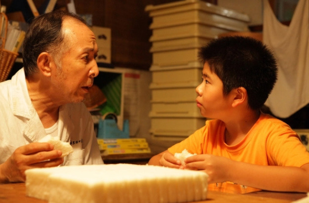 어떻게 보면 이 작품 자체가 그 '가루칸'떡과 같은 느낌일지도 모릅니다. '그렇게 아버지가 된다', 걸어도 걸어도', '바닷마을 다이어리'와 같은 작품들에서 느껴지는 감독 특유의 스타일을 충분히 감안한다고 해도 이 작품을 처음 접하신다면 중반부까지의 내용은 꽤 심심하고 단조로울 수 있어요. 몇 년 전에 처음 이 작품을 접했을 때, 솔직히 살짝 졸음이 몰려와 몇몇 장면들을 놓쳐버리기도 했습니다. 전통 방식으로 가루칸 떡을 빚어오던 영화 속 외할아버지가 그 떡 맛이 어떤지 물어보면 아이들뿐 아니라 심지어 동년배 어르신들까지도 한결같이 이렇게 대답하죠.